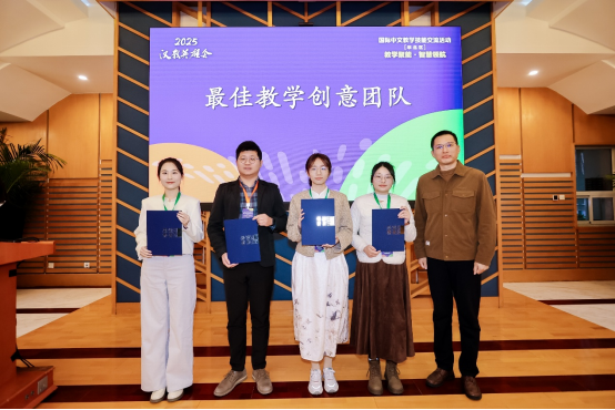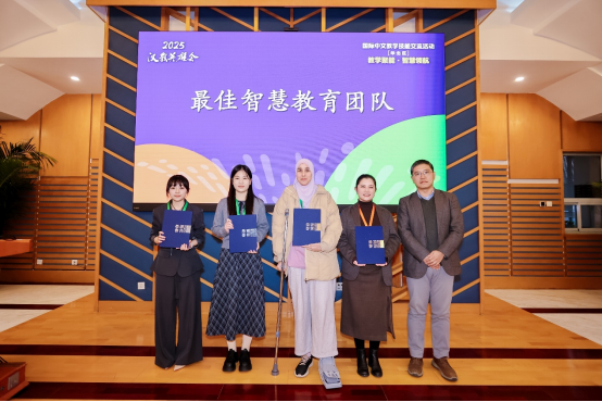 在闭幕式环节,外研社中国语言文化出版分社社长鞠慧表示,本次交流活动充分展现华北区各校师生的传承与创新,生动诠释了国际中文教育事业薪火相传的精神。期待更多师生能够积极参与、密切关注并深入研究“汉教英雄会”这一教学交流平台,共同携手推动国际中文教育事业的繁荣与发展。活动尾声,伴随着欢快的音乐和热烈的掌声,点评专家为2025“汉教英雄会”国际中文教学技能交流活动(华北区)的优秀团队颁发荣誉证书。会场洋溢着收获的喜悦和依依不舍的情谊,为这场充满智慧与温度的教学盛会画上了圆满的句号。