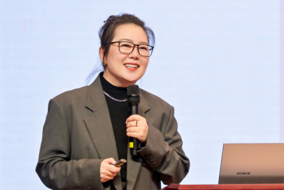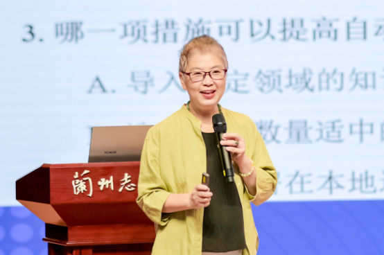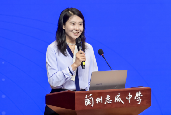 罗少茜作题为“新教改、新中考背景下,如何利用《新概念英语》高效应对中高考”的主旨讲座。她围绕新教改和新中考,重点分享了生成式人工智能在二语测试设计中的应用。她指出在中高考改革背景下,测试任务需要注重真实情境与综合运用。她推荐以题材丰富、场景真实、覆盖完整学习者梯度的《新概念英语智慧版》为二语测试的知识库,并以第二册Lesson 23 A New House为例,展示了如何生成符合测试目标的测试任务——基础阶段重在日常生活交流,提高阶段重在学习活动展示,熟练阶段重在跨文化交际能力培养。最后她提出,生成式人工智能在语言测试任务设计中具有巨大潜力,我们要正视其带来的技术、伦理和社会挑战,精准引导,提升测评的专业度和效果。