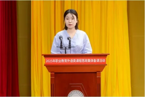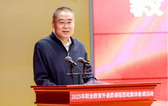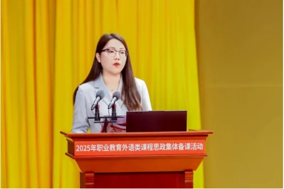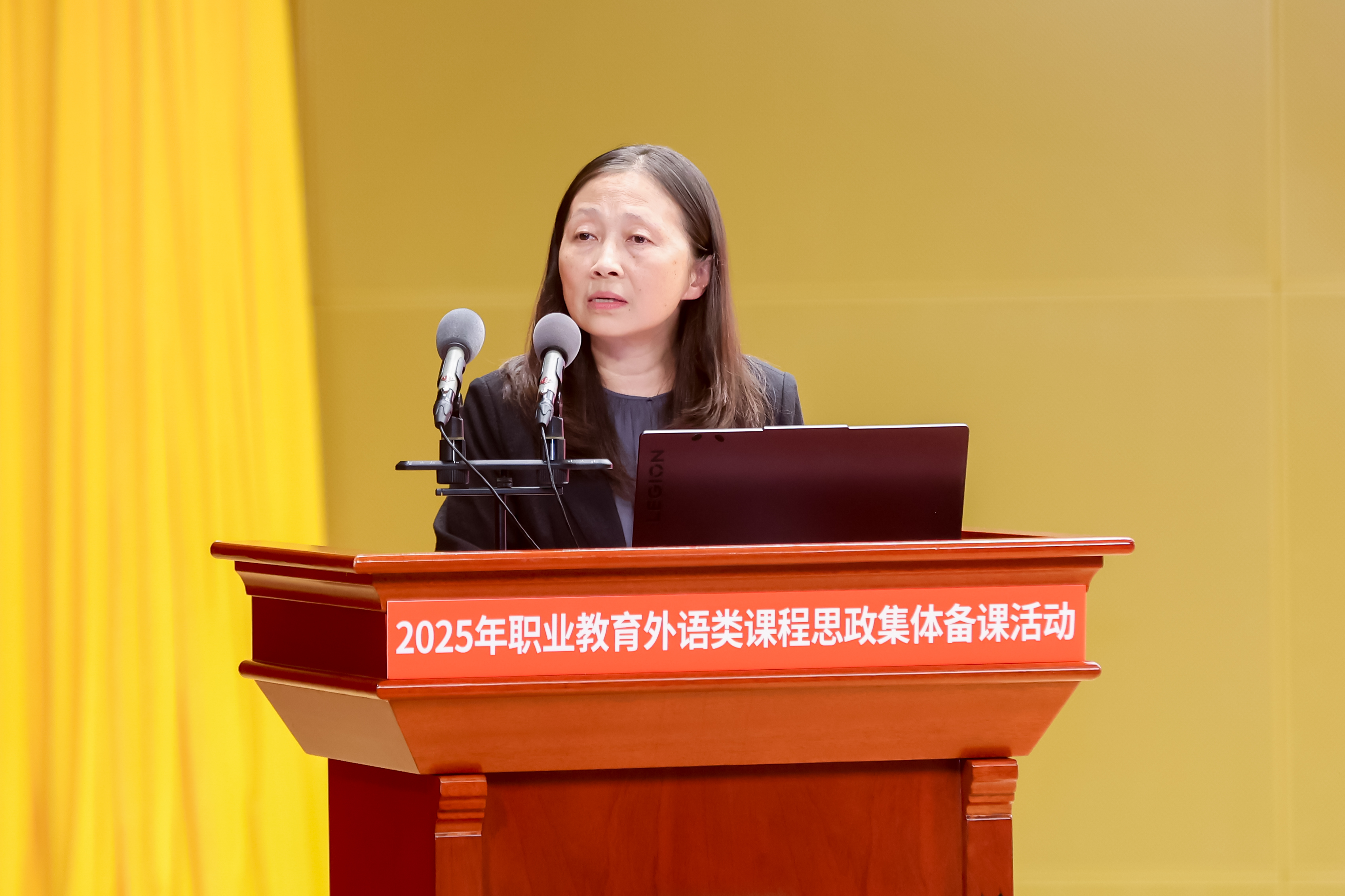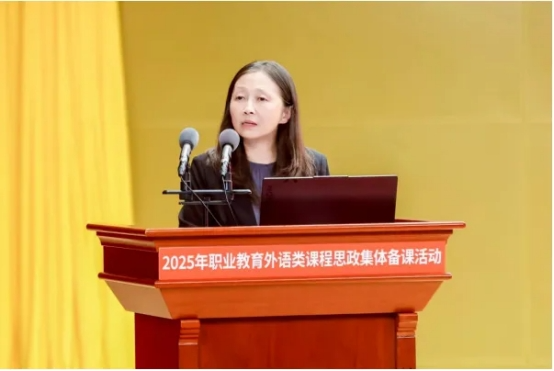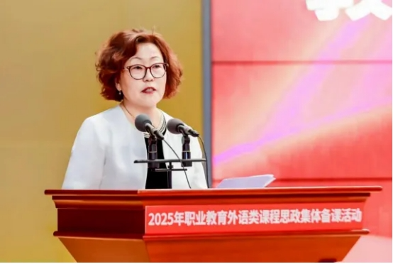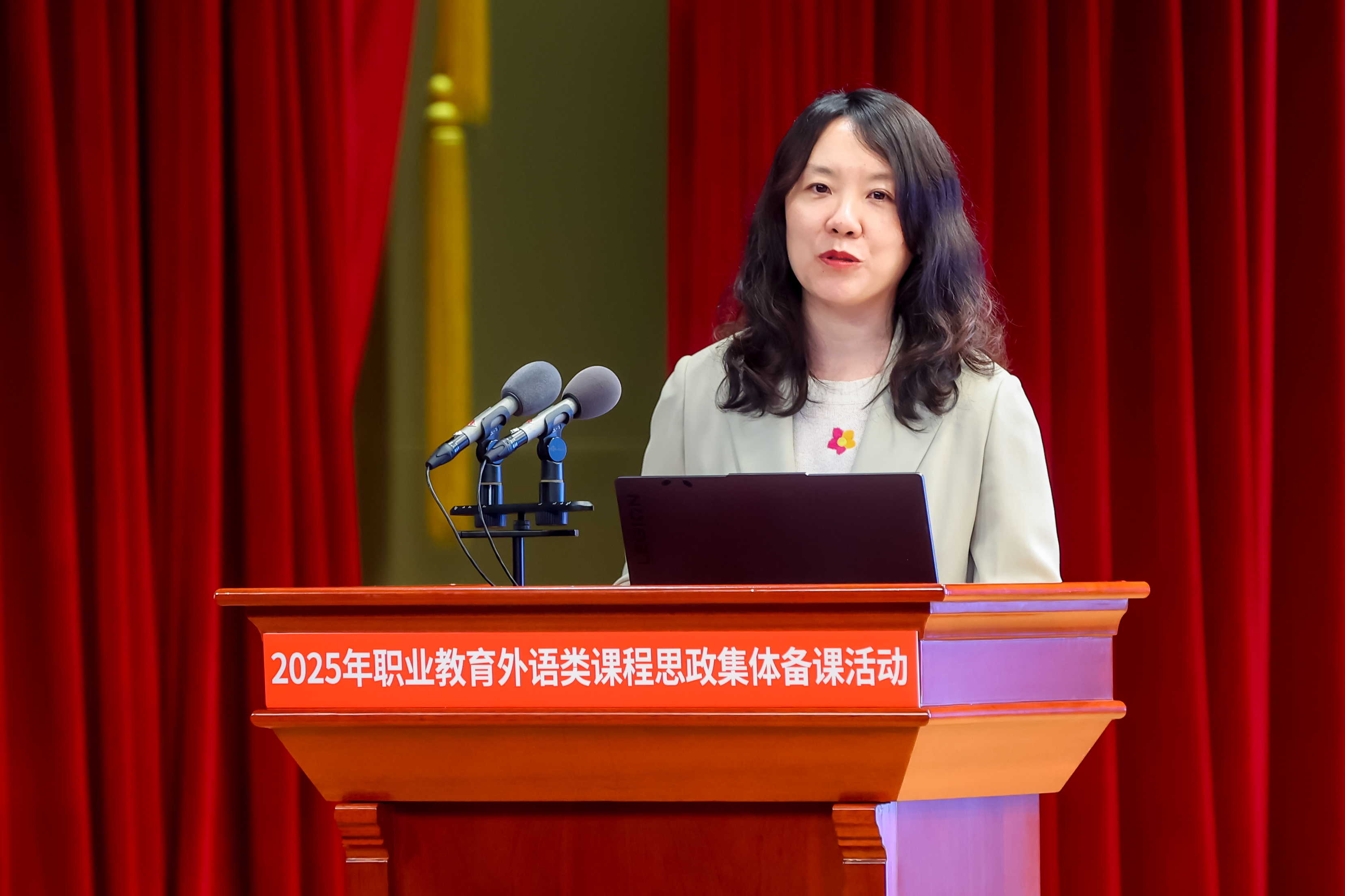 在致辞环节,王艺雯表示,本次职业教育外语类课程思政集体备课活动是落实教育强国建设规划纲要、实施新时代立德树人工程的重要举措。自2020年启动以来,活动已连续开展六年,今年的活动覆盖19个专业大类,规模创历史新高。她强调,外语课程思政要聚焦国家战略,结合职业教育特点,引导学生讲好中国故事、服务国际交流,同时加强人工智能等新技术在教学中的融合应用,推动思政元素自然渗透于专业教学全过程。