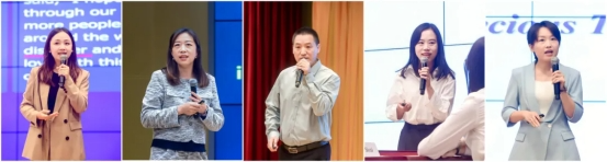 下午的展示活动由来自全国的五所院校代表展示课程思政创新实践。北京经济管理职业学院教学团队展示的《大学英语》课程思政教学实践,授课内容紧扣专业学生实际,充分体现了“岗课赛证”融通,体现了语言技能训练与价值引领的深度融合,强调学生的跨文化交际能力与民族自豪感的培养和提升。陕西职业技术学院教学团队展示的《职业素质英语》课程根植“价值聚合、精准融合、多元整合”理念,探索高职英语与思政教育深度融合的新路径,充分体现“课程承载思政、思政赋能专业”的育人实效。江苏海事职业技术学院教学团队展示的《公共英语》课程分享如何将“科技”与“延安精神”融入语言学习,讲述中国绿色故事 ,实现语言学习、技术应用与价值引领的有机统一。深圳职业技术大学教学团队分享的《综合英语》课程创新融合“科技向善”与全人教育,体现了从语言学习到文化自信、从技术能力到责任担当的升华,为培养能讲好中国技术故事的国际化工程师提供了创新范式。东营职业学院教学团队展示的《实用英语》课程中,以“产出导向法”为教学主线,依托真实商务情境,将语言训练与职业能力培养深度融合,围绕有效沟通、文化交流与国际视野,进行课程思政建设。展示团队都强调了“真实情境”和“任务驱动”在教学中的重要性,借助AI智能工具,通过设计与企业实际需求紧密联系的教学活动,使学生在掌握语言技能的同时,潜移默化地接受价值观熏陶,实现“润物细无声”的育人效果。