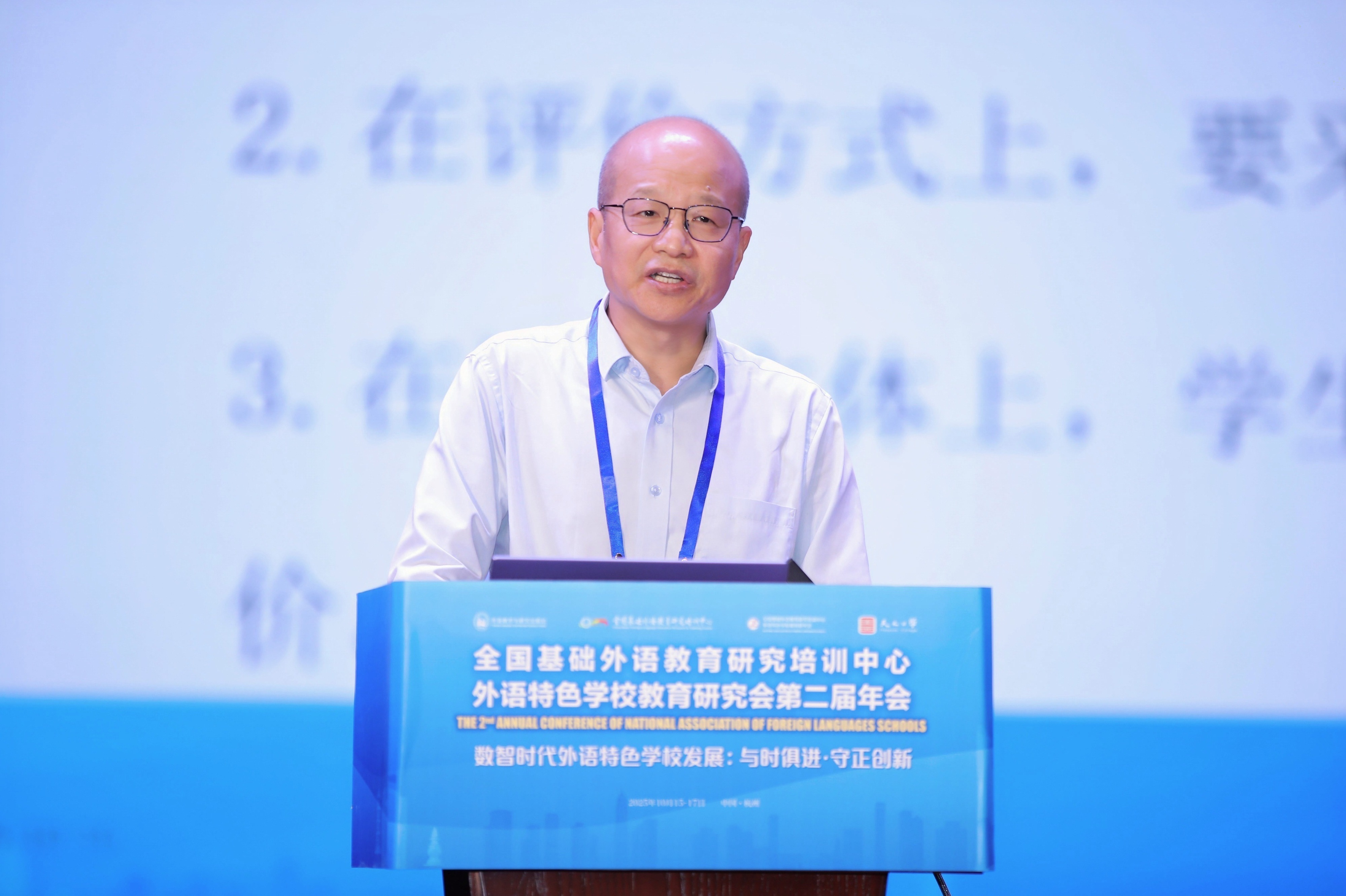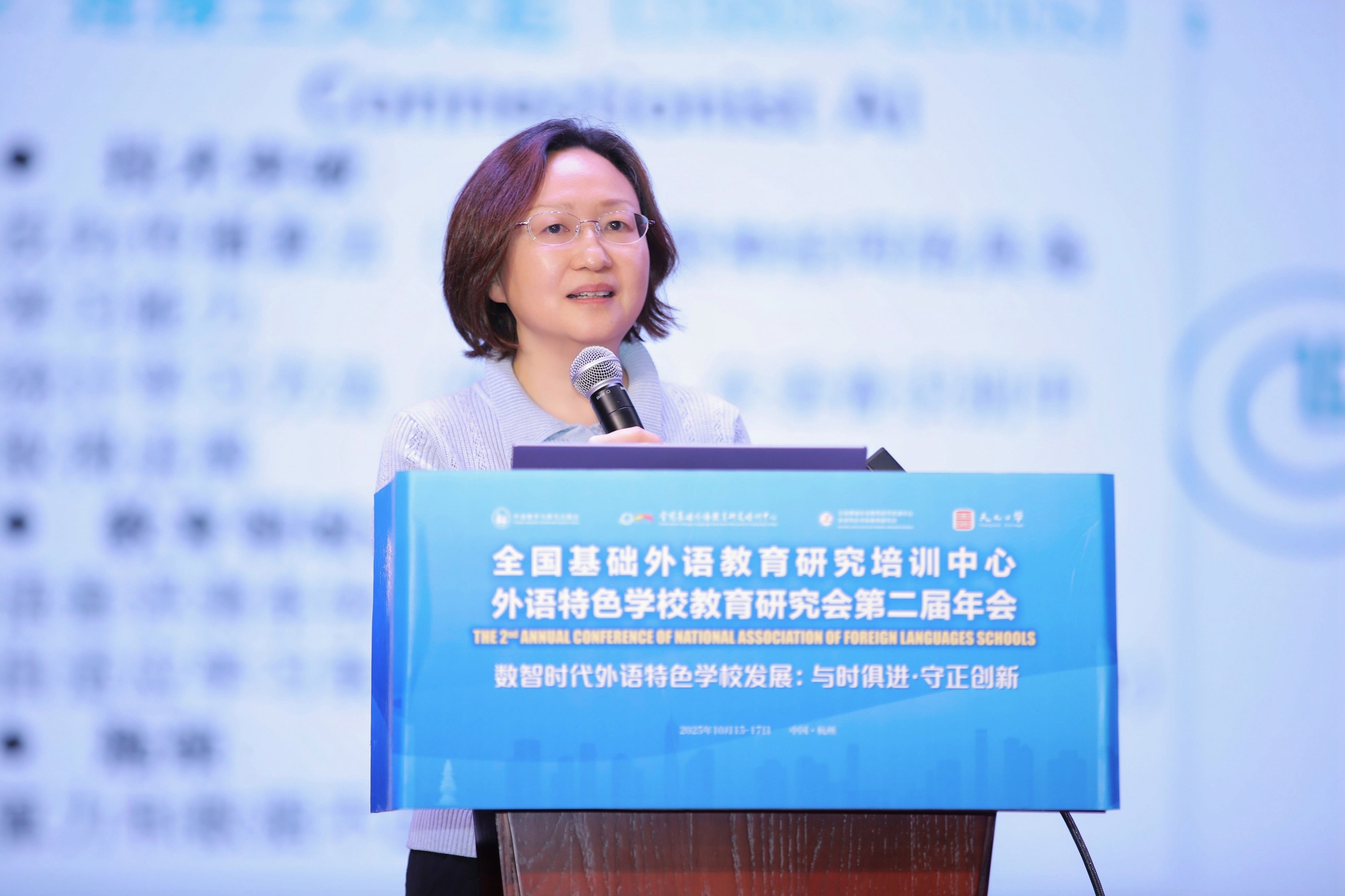 2025年10月16日,由全国基础外语教育研究培训中心(以下简称“全基中心”)指导,全国基础外语教育研究培训中心外语特色学校教育研究会(以下简称“全基中心外语特色学校教育研究会”)主办,外语教学与研究出版社(以下简称“外研社”)、杭州天元公学承办的“全国基础外语教育研究培训中心外语特色学校教育研究会第二届年会”在杭州顺利召开。