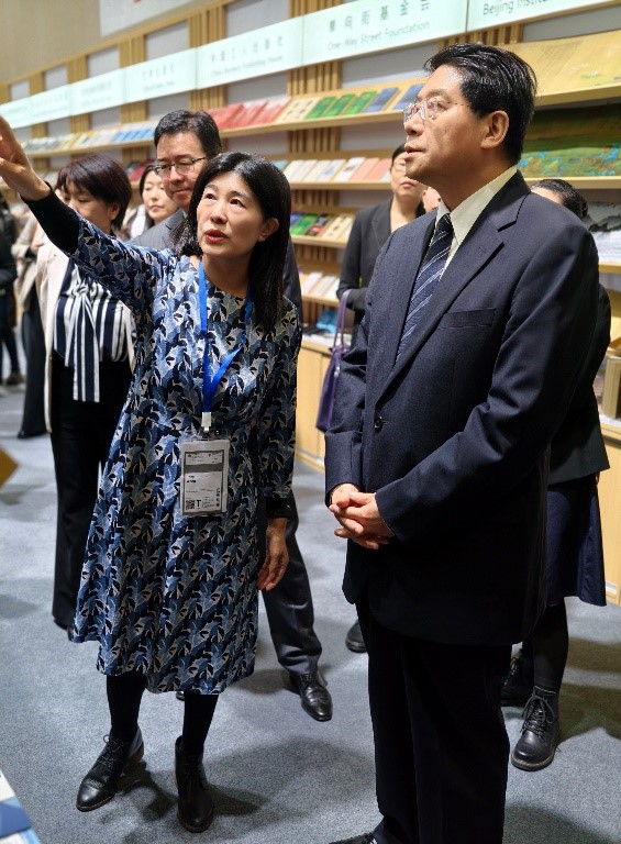 10月15日书展开展后,中国驻德国大使邓洪波莅临法兰克福书展中国联合展台参观指导。王芳社长向其详细介绍了外研社参展产品特色与出版成果,集中展示了外研社在国际传播领域的亮眼成绩。