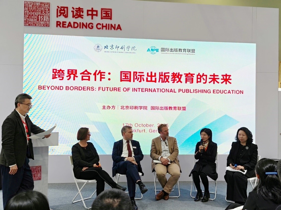 10月17日,王芳社长应邀出席北京印刷学院在书展主办的“跨界合作:国际出版教育的未来”对话论坛并作报告。她指出,面对出版业数智化转型与跨文化传播新挑战,国际出版教育需聚焦三大任务:制定国际化出版人才培养标准、打破产学壁垒建立实训基地、成立国际出版研究中心加速成果转化。作为国际出版教育联盟成员,外研社将开放数字平台资源,提供产教融合实践基地,并依托出版联盟等国际网络构建全球协作体系。论坛嘉宾还包括北京印刷学院出版学院副院长叶文芳、德国美因茨大学出版学博士安克·沃格尔(Anke Vogel)、施普林格・自然全球图书负责人及执行副总裁汤恩平博士、德古意特博睿联合首席出版官薄墨如(Maurits van den Boogert)。本次活动由语文出版社党总支书记、社长于春迟主持。