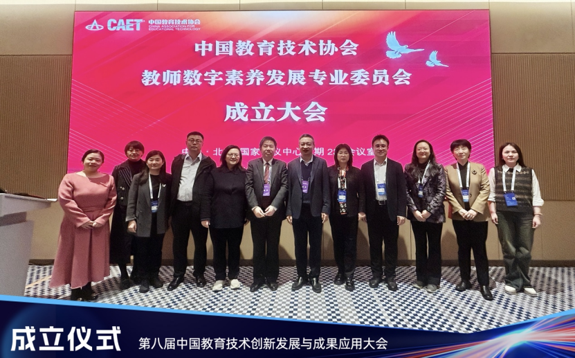 大会期间,中国教育技术协会教师数字素养发展专业委员会成立大会顺利举行。华中师范大学吴砥当选为第一届教师数字素养发展专业委员会主任,湖北教师发展研究院王金涛、陕西师范大学葛文双、广西师范大学熊西蓓、外研在线CEO李会钦、北京继教网总经理石光等当选专委会副主任,北京外国语大学李莉文、中国地质大学(北京)邓雁希、山东师范大学王卓、南京特殊教育师范学院万谊等当选常务委员。华中师范大学陈敏担任秘书长,外研在线副总裁蒋亦雷、文华学院李玲等担任副秘书长。华中师范大学徐建担任监事。