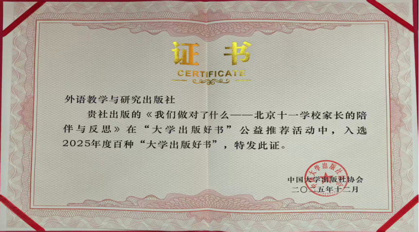 12月13日,中国大学出版社协会2025年年会在杭州召开。会议期间对外发布2025年度百种“大学出版好书”书目。外研社出版的《西行漫记(英汉对照・有声纪念版)》与《我们做对了什么——北京十一学校家长的陪伴与反思》分别入选主题出版和大众图书类年度好书。