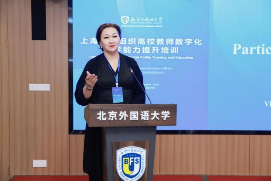 北京外国语大学教育学院常务副院长苑大勇教授表示,北外素有“外交官摇篮”的美誉,长期深耕于教育全球化领域,作为全球教师发展学院的核心成员,积累了丰富的国际教育合作经验,为跨文化交流与教育协同搭建了坚实桥梁。同时,作为首批人工智能助推教师队伍建设试点高校,北外在智能技术与教育融合领域成果斐然,形成了先进的数字化教学实践模式。他强调,北外将以本次培训为契机,深化上合国家“数字教育伙伴关系”,推动构建常态化互访与联合教研平台,为构建教育领域人类命运共同体注入北外力量。