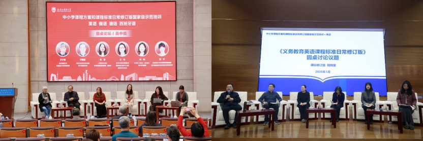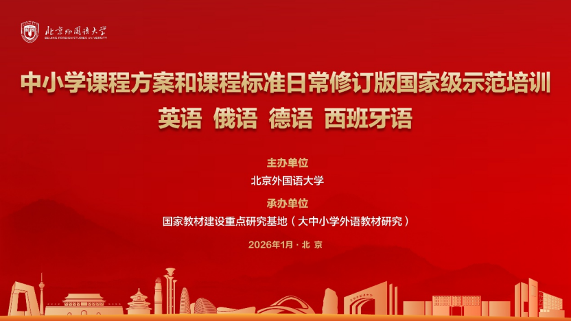 2026年1月20日-21日,由北京外国语大学主办、国家教材建设重点研究基地(大中小学外语教材研究)承办、外语教学与研究出版社提供支持的“中小学课程方案和课程标准日常修订版国家级示范培训(英语 俄语 德语 西班牙语)”在北京外国语大学国际会议中心成功举办。本次培训聚焦英语、俄语、德语、西班牙语四个语种,覆盖小学、初中、高中三个学段,通过专题报告、圆桌讨论、教学案例观摩与评析、工作坊等多种形式,深度解读课程方案和课程标准修订要点,探讨教学转化路径,推动课程标准的落地实施。