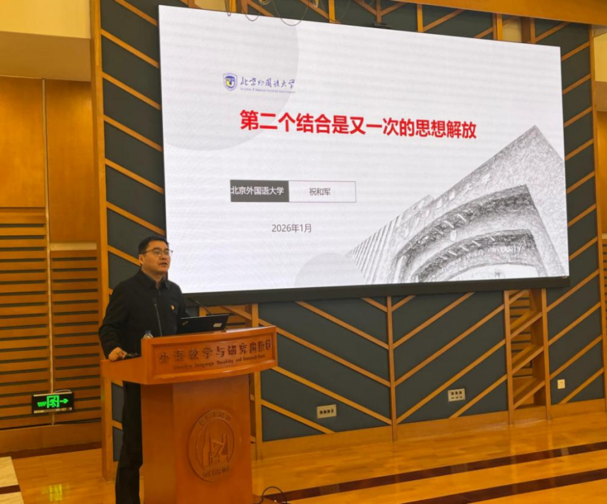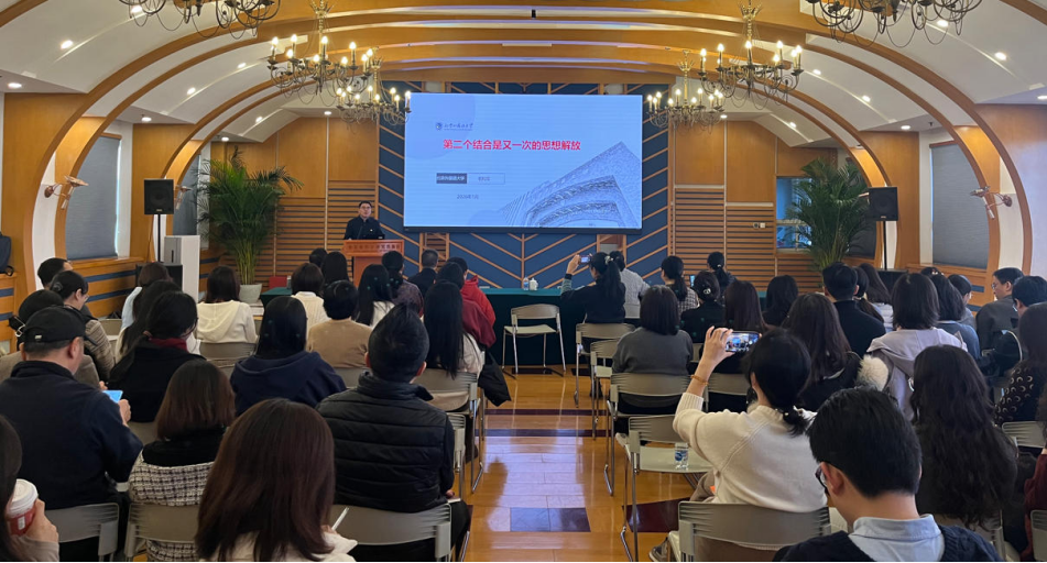 2021年7月,习近平总书记在庆祝中国共产党成立100周年大会上首次提出“把马克思主义基本原理同中国具体实际相结合、同中华优秀传统文化相结合”的重大理论创新;2023年6月,习近平总书记在文化传承发展座谈会上对“两个结合”特别是“第二个结合”的一系列重大理论和现实问题做了全面系统的阐述。为深入学习贯彻习近平总书记关于“第二个结合”的重要论述精神,切实将其核心要义融入教材建设实践,1月23日,外研集团(外研社)党委第五、第六、第八党支部与北京外国语大学马克思主义学院党总支举办党建交流活动,特邀马克思主义学院党总支书记祝和军同志以“第二个结合是又一次的思想解放”为题做专题讲座。第五党支部书记张黎新同志主持此次专题学习活动,三个党支部全体党员和入党积极分子参加学习。