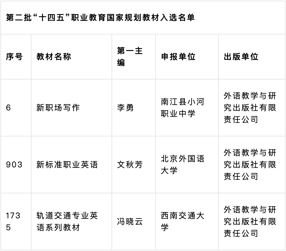 喜报|外研社3种教材入选第二批“十四五”职业教育国家规划教材书目
