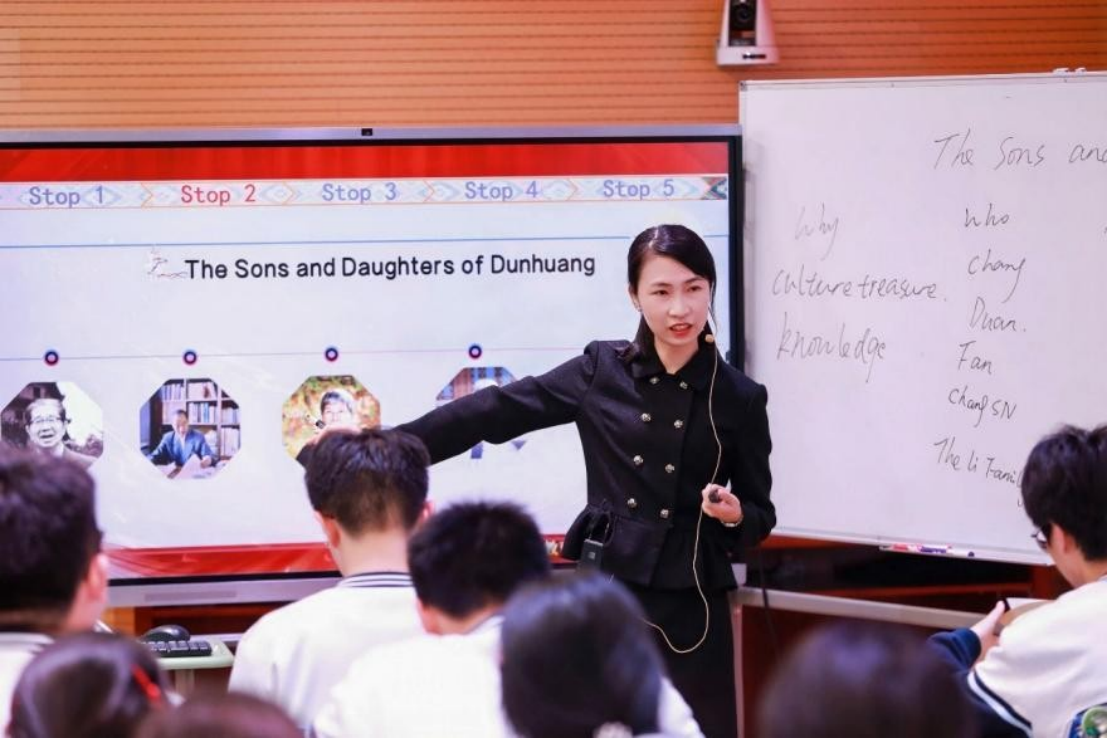 海南中学教师宿慧美就《悦读中国第20级·心归敦煌》进行了教学展示及说课。该课的指导教师为海南省教育研究培训院高中教研部主任卓俊斌和海南中学英语教研组组长陈琦。在教学展示环节,宿慧美以“敦煌之旅”为主线,层层推进课堂教学。首先,借助敦煌主题视频,激发学生探究兴趣,帮助学生初步感知敦煌的艺术魅力与历史价值。随后,呈现敦煌面临的自然侵蚀与人为挑战,引导学生了解常书鸿、樊锦诗等敦煌守护者的坚守与奉献。接着,组织学生通过思维导图和小组讨论深化理解,梳理守护者如何将人生“偶然”转化为终身使命的坚守之路。最后,利用VR技术展示数字敦煌的保护成果,引导学生主动关注文化遗产传承与保护。在说课环节,宿慧美对教学设计思路进行了深入剖析。她重点阐述了如何通过梯度问题设计,引导学生从知识获取走向深度思考与情感共鸣,同时借助数字人互动、VR技术赋能课堂教学,激发学生的文化自信,增强文化传承的使命与担当。