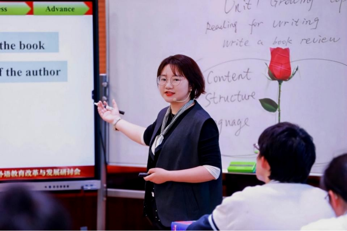 贵阳市第一中学教师王春艳围绕高中《英语》(新标准)修订版选择性必修第二册Unit 1 Growing up的Developing ideas读写课进行教学展示及说课。该课指导教师为贵阳市第一中学英语教研组组长裴敏和贵阳市第一中学教师王妤。在教学展示环节,王春艳以书评写作为核心,采用5A(Activate—Acquire—Apply—Assess—Advance)教学流程展开课堂。在Activate环节,以世界读书日线上活动为情境,发布书评写作任务,激活学生已知、明确课堂学习目标。在Acquire环节,引导学生研读《小王子》书评范文,提取关键信息,梳理文章结构、积累相关表达,帮助学生搭建写作支架。在Apply环节,借助分层任务卡,引导学生根据自身水平完成初稿写作,实现知识的有效迁移与内化。在Assess环节,组织学生开展自评与互评,扎实推进教学评一体化的教学实施。在Advance环节,结合经典文本语句联结学生成长实际,深化对成长与责任主题的理解。在说课环节,王春艳详细阐述了教学思路:首先,立足“成长”主题,依托产出导向法,以读促写,并借助《小王子》书评范文搭建写作支架;其次,以世界读书日线上活动为情境,通过分层任务卡与多元评价,兼顾学生差异、突破教学难点;最后,以读写活动为载体,引导学生思考成长与责任,实现语言能力、思维品质和人文素养的同步提升。