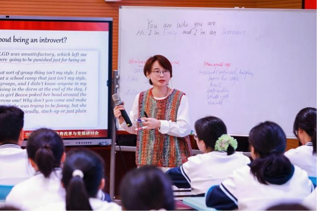 威海市第一中学教师陈洁围绕《高中英语综合进阶》第一册Unit 1 You are who you are的Understanding ideas阅读课进行了教学展示及说课。该课的指导教师为威海市高中英语教研员于振华。在教学展示环节,陈洁首先用性格测试导入课堂,激发学生的学习兴趣。然后通过预习检测、关键信息提取、问题链探究、小组讨论等活动,层层递进地推进学生对文本的理解,帮助学生探究语篇主人公认识自我、完善自我的主题意义,并引导学生将语篇内容与个人生活相联系,客观认识自我。在说课环节,陈洁指出,本节课通过深度学习(deep reading)、深度思考(deep thinking)、深度联结(deep connecting)进行以学生为中心的课堂教学,引导学生将对语篇内容的理解迁移到认识自身,并在此过程中理解自我接纳与自我完善的辩证关系,促进语言能力和思维品质的同步提升。