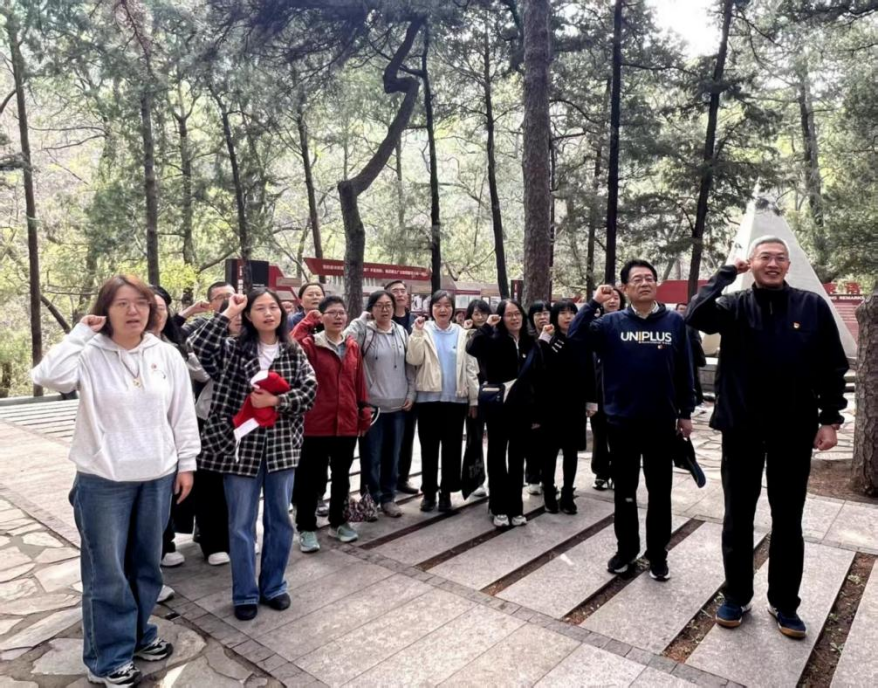 讲话结束后,第十党支部书记沈中锋带领全体党员整齐列队,大家佩戴党徽、面向党旗,郑重举起右拳、庄严宣誓,重温入党誓词。“我志愿加入中国共产党……”铿锵有力、掷地有声的誓言,在“一二·九”运动纪念地的山林间久久回荡,既是对革命先烈的深切缅怀与致敬,也是全体党员坚定理想信念、践行初心使命、勇担时代重任的郑重承诺,更凝聚起大家奋进新征程、建功新时代的强大力量。